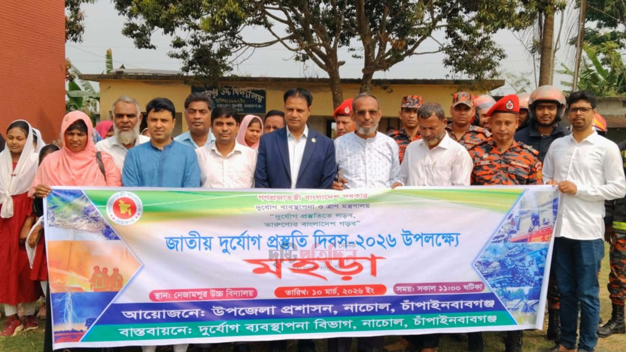 "দুর্যোগ প্রস্তুতিতে লড়ব' তারুণ্যের বাংলাদেশ গড়ে" এই প্রতিপাদ্যকে সামনে রেখে, চাঁপাইনবাবগঞ্জের নাচোলে জাতীয় দুর্যোগ প্রস্তুতি দিবস পালিত হয়েছে।