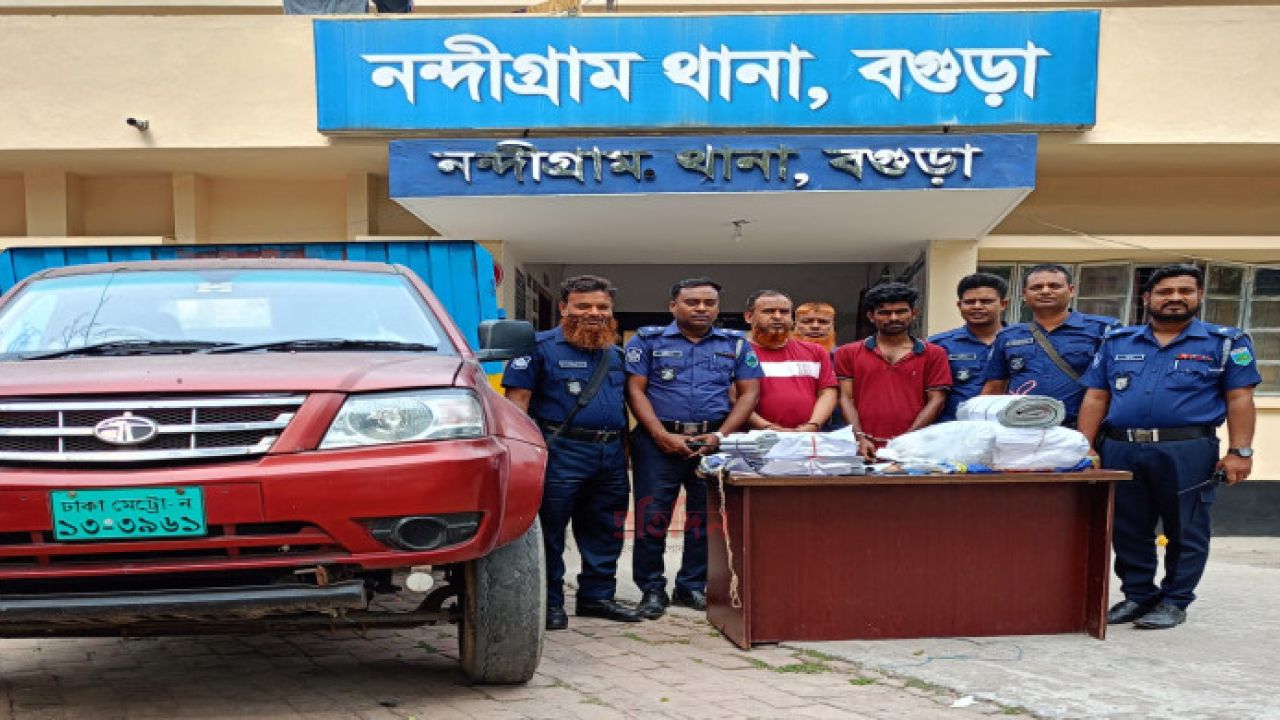 শনিবার (৪ এপ্রিল) বিকেলে নাটোর-বগুড়া মহাসড়কের নন্দীগ্রাম বাসস্ট্যান্ড এলাকায় অভিযান চালিয়ে রাজশাহী থেকে ছেড়ে আসা বগুড়া গামী ঢাকা মেট্রো-ন ১৩-৩৯৬১ নাম্বারের ডেলিভারি ভ্যান (মিনি ট্রাক) আটক ও ট্রাক তল্লাশি করে সাদা প্লাস্টিকের বস্তায় প্রায় ২৬ লাখ টাকা মূল্যের ২.৩৮৬টি অবৈধ জাল ব্যান্ডরোল উদ্ধার সহ দুই জনকে গ্রেফতার করেন থানার অফিসার ইনচার্জ (ওসি) তারিকুল ইসলামের নেতৃত্বে সঙ্গীয় পুলিশ ফোর্স।